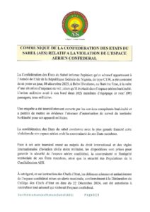 Dans sa déclaration, l’AES condamne fermement cet acte qualifié d’« inamical » et contraire au droit international, ainsi qu’aux règles encadrant les survols d’aéronefs militaires. La Confédération affirme avoir pris des mesures pour renforcer la sécurité de son espace aérien et protéger les populations.