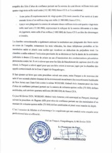 • déclaré WEREME Abdoul-Aziz Amaran coupable d’abus de confiance portant sur la somme de 112 383 900 francs CFA ;