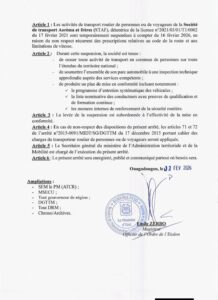 Pendant cette suspension, la STAF doit arrêter tout transport de personnes sur le territoire national, faire inspecter l’ensemble de son parc automobile et présenter un plan de mise en conformité incluant l’entretien des véhicules, la formation des conducteurs et le renforcement de la sécurité routière.